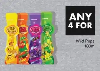 This special is available in various stores, view all products to get the cheapest Wild Pops. If you'd like to find out whether this product has a bigger discount in another store, check the category 'Grocery stores'. You may also find these specials interesting: Wild Pops Flavoured Drink, Wild pops flavoured drink & Crazee Pops.