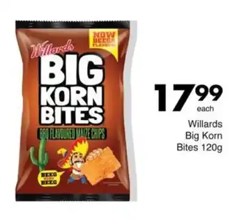 This special is available in various stores, view all products to get the cheapest Willards Big Korn Bites. If you'd like to find out whether this product has a bigger discount in another store, check the category 'Grocery stores'. You may also find these specials interesting: WILLARDS Big Korn Bites, Willards Big Korn Bites & Willards big korn bites.