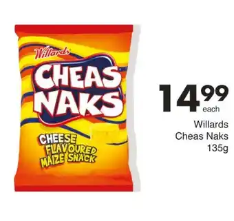 This special is available in various stores, view all products to get the cheapest Willards Cheas Naks. If you'd like to find out whether this product has a bigger discount in another store, check the category 'Grocery stores'. You may also find these specials interesting: Willards Cheas Naks, Willards Cheas Naks Assorted & Willards cheas naks cheese flavoured maize snack.