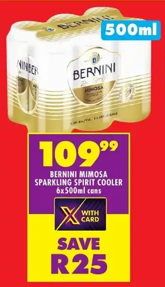 Bernini mimosa sparkling spirit cooler cans promotion at Shoprite Liquor