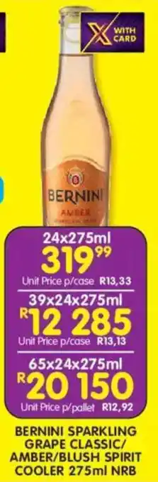 Bernini sparkling grape classic/ amber/ blush spirit cooler nrb offers and online specials, directly from Shoprite Liquor