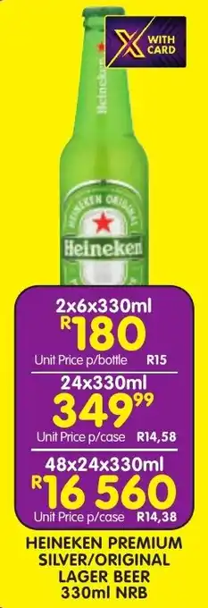 Heineken premium silver/ original lager beer nrb offers and online specials, directly from Shoprite Liquor
