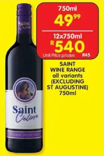 Saint wine range offers and online specials, directly from Shoprite Liquor