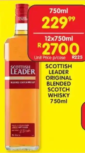 The price of Scottish leader original blended scotch whisky can be found at the top of the page, together with the dates during which the special is available. You can also check the price in the current Shoprite Liquor catalogue or on the Shoprite Liquor website. Promotional offers assure you of buying Shoprite Liquor products at the lowest price.