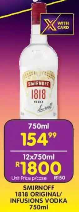 Now on special at Shoprite Liquor: Smirnoff 1818 original/ infusions vodka ✅ Valid from 14-12 to 4-01.
