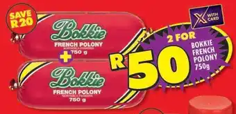 Now on special at Shoprite: Bokkie French Polony 750g ✅ Valid from 22-01 to 8-02.