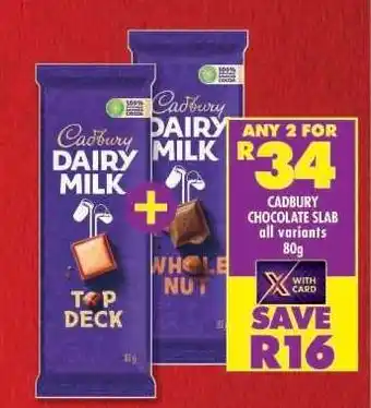 CADBURY CHOCOLATE SLAB all variants 80g promotion at Shoprite