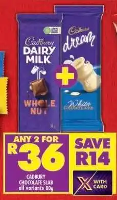 CADBURY CHOCOLATE SLAB all variants 80g promotion at Shoprite