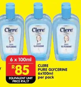 Clere Pure Glycerine 6x100ml per pack Discount at Shoprite
