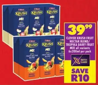 Clover krush fruit nectar blend/ tropika dairy fruit mix promotion at Shoprite