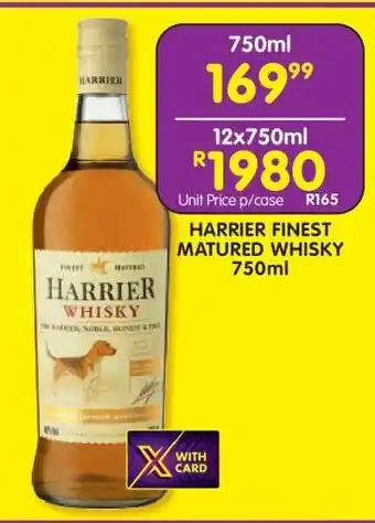 HARRIER FINEST MATURED WHISKY 750ml offers and online specials, directly from Shoprite