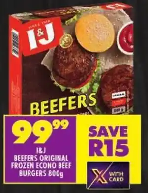 I&J beefers original frozen econo beef burgers Offer at Shoprite