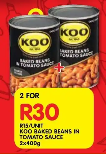 Koo baked beans in tomato sauce promotion at Shoprite