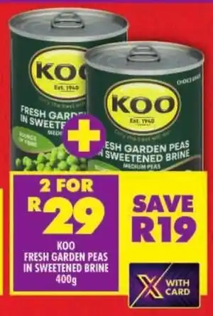Now on special at Shoprite: Koo garden peas in sweetened brine ✅ Valid from 19-01 to 8-02.