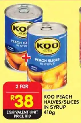 Koo peach halves/ slices in syrup Discount at Shoprite