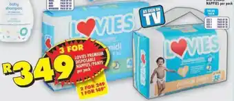 Lovies premium disposable nappies/ pants promotion at Shoprite