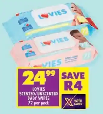 Lovies scented/ unscented baby wipes offers and online specials, directly from Shoprite