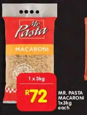 This special is available in various stores, view all products to get the cheapest Mr. pasta macaroni. If you'd like to find out whether this product has a bigger discount in another store, check the category 'Grocery stores'. You may also find these specials interesting: MR. PASTA MACARONI 3kg, MR. PASTA MACARONI/SPAGHETTI 2x500g & Mr. pasta macaroni/ spaghetti.