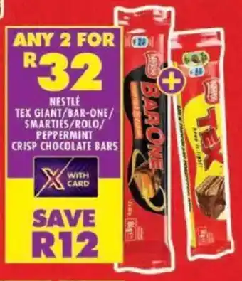 Nestle tex giant/ bar-one/ smarties/ rolo/ peppermint crisp chocolate bars Offer at Shoprite