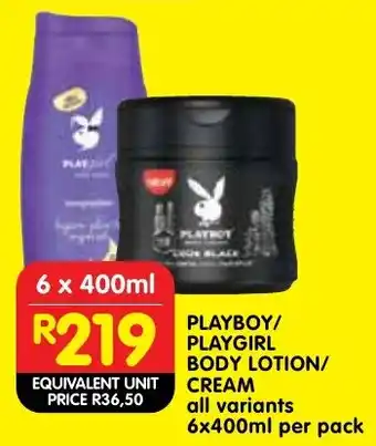 Playboy/ playgirl body lotion/ cream Discount at Shoprite