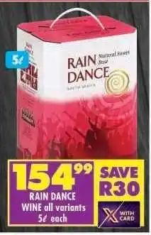 RAIN DANCE WINE all variants offers and online specials, directly from Shoprite