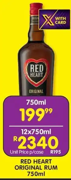 Now on special at Shoprite: RED HEART ORIGINAL RUM 750ml ✅ Valid from 19-01 to 8-02.