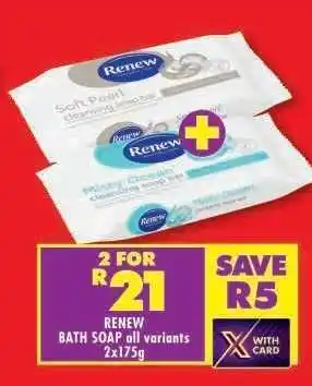 Now on special at Shoprite: RENEW BATH SOAP all variants 2x175g ✅ Valid from 22-01 to 8-02.