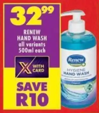 This special is available in various stores, view all products to get the cheapest Renew hand wash. If you'd like to find out whether this product has a bigger discount in another store, check the category 'Grocery stores'. You may also find these specials interesting: Renew Hyper Value Liquid Hand Wash/ Refill All Variants, Renew oralcare mouth wash & Sunlight Hand Wash.