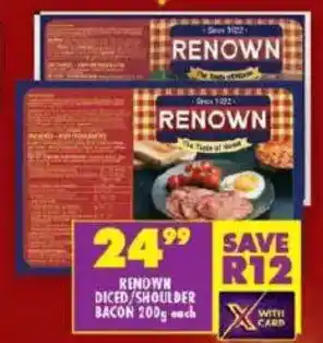 Now on special at Shoprite: Renown diced/ shoulder bacon ✅ Valid from 21-12 to 28-12.