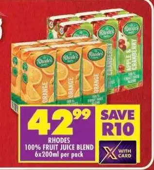 RHODES 100% FRUIT JUICE BLEND 6x200ml per pack Discount at Shoprite