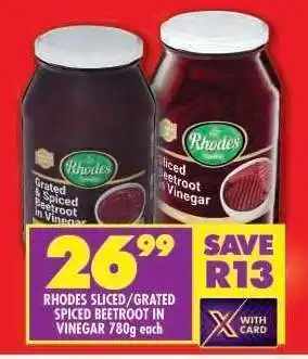 RHODES SLICED/GRATED SPICED BEETROOT IN VINEGAR 780g promotion at Shoprite