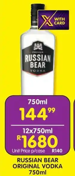 Now on special at Shoprite: RUSSIAN BEAR ORIGINAL VODKA 750ml ✅ Valid from 19-01 to 8-02.
