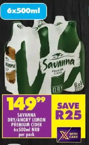 Savanna dry/ angry lemon premium cider nrb promotion at Shoprite
