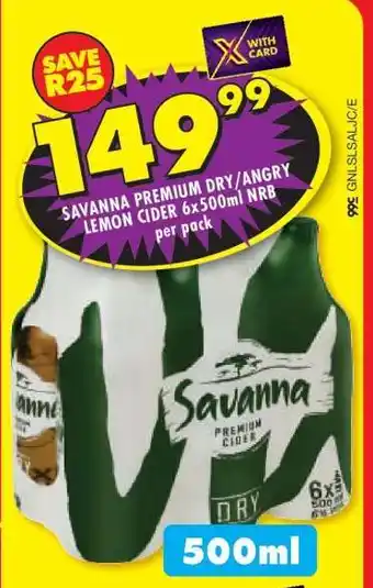 SAVANNA PREMIUM DRY/ANGRY LEMON CIDER 6x500ml NRB promotion at Shoprite