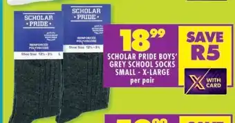 Now on special at Shoprite: SCHOLAR PRIDE BOYS' GREY SCHOOL SOCKS SMALL - X-LARGE ✅ Valid from 29-12 to 8-02.