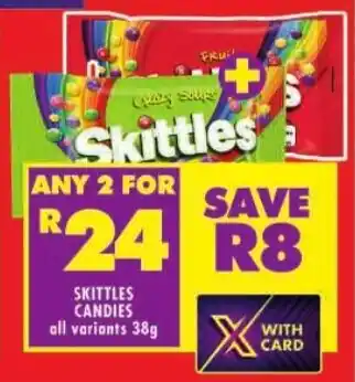 Shoprite offers a wide collection of products, besides the Skittles candies. Keep an eye on the weekly Shoprite catalogue to find the best specials and promotions. Besides Skittles candies, you can also find the following offers: Amajoya Candies, Amajoya Assorted Candies & Skittles Candy 38 g Assorted.