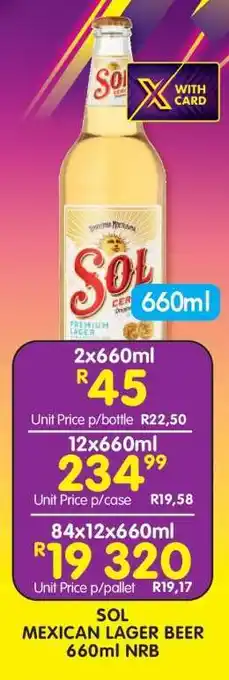 SOL MEXICAN LAGER BEER 660ml NRB Discount at Shoprite