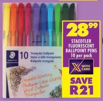 STAEDTLER FLUORESCENT BALLPOINT PENS 10 per pack promotion at Shoprite