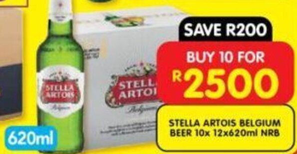 | STELLA ARTOIS BELGIUM BEER 620ml NRB | Shoprite | R 259,99 | 07 July 2025 | 20 July 2025 | |||