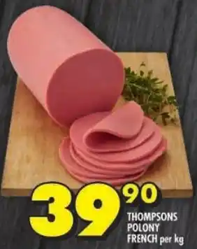This special is available in various stores, view all products to get the cheapest Thompsons polony french. If you'd like to find out whether this product has a bigger discount in another store, check the category 'Grocery stores'. You may also find these specials interesting: THOMPSONS FRENCH POLONY, Thompsons French/ Chicken Polony & Ritebrand french polony.