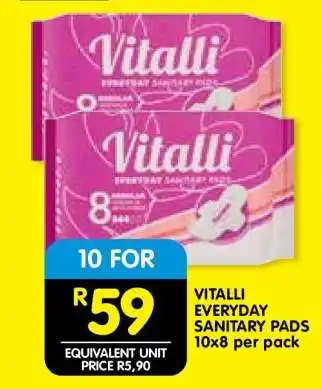 VITALLI EVERYDAY SANITARY PADS 10x8 per pack promotion at Shoprite
