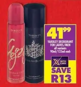 Now on special at Shoprite: Yardley Deodorant for Ladies/Men ✅ Valid from 22-01 to 8-02.