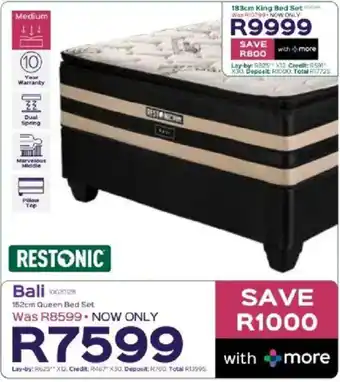 Sleepmasters offers a wide collection of products, besides the Restonic Bali 152cm Queen Bed Set. Keep an eye on the weekly Sleepmasters catalogue to find the best specials and promotions. Besides Restonic Bali 152cm Queen Bed Set, you can also find the following offers: Restonic 152cm Queen Bed Set, Restonic 152cm Queen Bed Set & Restonic Bazaruto 152cm Queen Bed Set 10020125.
