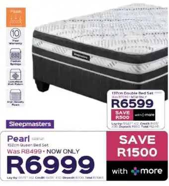 The price of Sleepmasters Pearl 152cm Queen Bed Set can be found at the top of the page, together with the dates during which the special is available. You can also check the price in the current Sleepmasters catalogue or on the Sleepmasters website. Promotional offers assure you of buying Sleepmasters products at the lowest price.