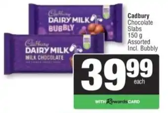 This special is available in various stores, view all products to get the cheapest Cadbury Chocolate Slabs Assorted. If you'd like to find out whether this product has a bigger discount in another store, check the category 'Grocery stores'. You may also find these specials interesting: Cadbury Dairy Milk or Bubbly Chocolate Slabs Assorted, Cadbury Dairy Milk Chocolate or Bubbly Slabs Assorted 150g & Cadbury Dairy Milk Chocolate or Bubbly Slabs Assorted.