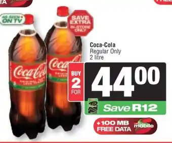 This special is available in various stores, view all products to get the cheapest COCA-COLA. If you'd like to find out whether this product has a bigger discount in another store, check the category 'Grocery stores'. You may also find these specials interesting: COCA-COLA, Coca-Cola Bottle & Coca-Cola Regular.