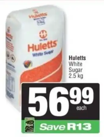 This special is available in various stores, view all products to get the cheapest Huletts White Sugar. If you'd like to find out whether this product has a bigger discount in another store, check the category 'Grocery stores'. You may also find these specials interesting: Huletts White Sugar 2.5kg, Huletts White Sugar & Huletts White Sugar.