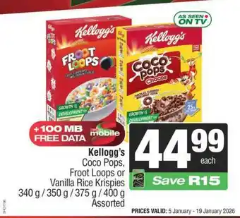 Now on special at Spar: Kellogg’s Coco Pops, Froot Loops or Vanilla Rice Krispies ✅ Valid from 5-01 to 19-01.