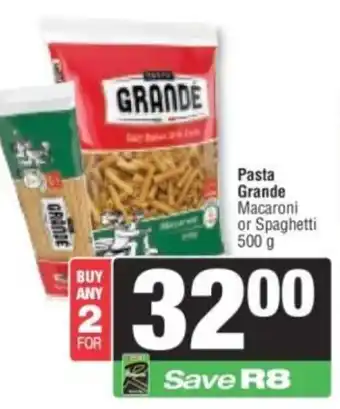 This special is available in various stores, view all products to get the cheapest Pasta Grande Macaroni or Spaghetti. If you'd like to find out whether this product has a bigger discount in another store, check the category 'Grocery stores'. You may also find these specials interesting: Pasta Grande Macaroni Or Spaghetti-For 3 x 500g, Pasta Grande Spaghetti/ Macaroni & PASTA GRANDÉ Spaghetti or Macaroni.