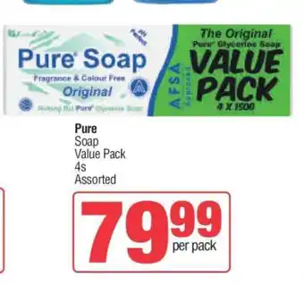 Spar offers a wide collection of products, besides the Pure Soap Value Pack. Keep an eye on the weekly Spar catalogue to find the best specials and promotions. Besides Pure Soap Value Pack, you can also find the following offers: Pure Living Toothbrush Value Pack, Pure Soap Glycerine Soap & Pure Soap Pure Infant Glycerine Soap/ Reitzer's Aqueous Cream.